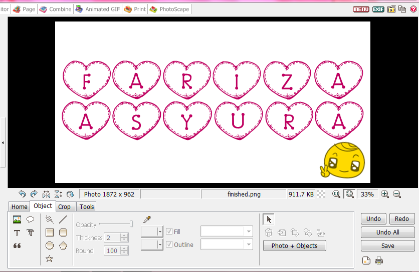 Lepastu korang transparent kan background yang kaler itam tu. Ana dah bulat kan. 4. Then korang crop background putih tu ikut cita rasa korang. Ana dah bulatkan tempat crop kat gambar atas . Lepas korang dah highlight gambar yang nak dicrop, korang tekan crop yang dah di bulatkan tu, 5. Tiba masa untuk decorate! Kalau nak tambah tulisan, korang tekan object- tekan icon 'T' dan pilihlah font2 yg korang nak. Kalau nak font2 yang comel2, korang boleh dowload DI SINI. Lepastu masukkan lah gambar kartun ke, bunga ke, suka hati lah. Tapi kat photoscape memang dah ada elemen tu. Pergi ke object, tekan icon gambar, pilih kategori. tu dia icon nye. ^ tu guna photoscape punya elemen ^ reben tu dowload DI SINI Kalau ada elemen terkeluar sikit x ape. tambah bunga buttons~~ Kalau dah puas ati, save. Tapi ingat, tekan save as ! Kalau tak transparent background tadi x boleh gune bnyk kali dah...kalo tgk kat sini mmg background dy mcm wane putih tapi lepas save karang background dy mmg transparent. Like this... Kalau keluar kotak seperti gambar di atas click NO. Kalau tak nanti background dy x transparent. Macam ini bila dah buka balik lepas save! Nanti bila dah upload kat header blog, nanti dia akan transparent secara semula jadi. See, senang kan?? Mamang tak secantik Adobe Photoshop, Sekurang-kurangnya kita ada header hasil tangan sendiri. Dan terima kasih kepada Kakak Fariza Asyura kerana sudi kongsi . Belum cuba belum tahu!! ![]() ![]() ![]() |